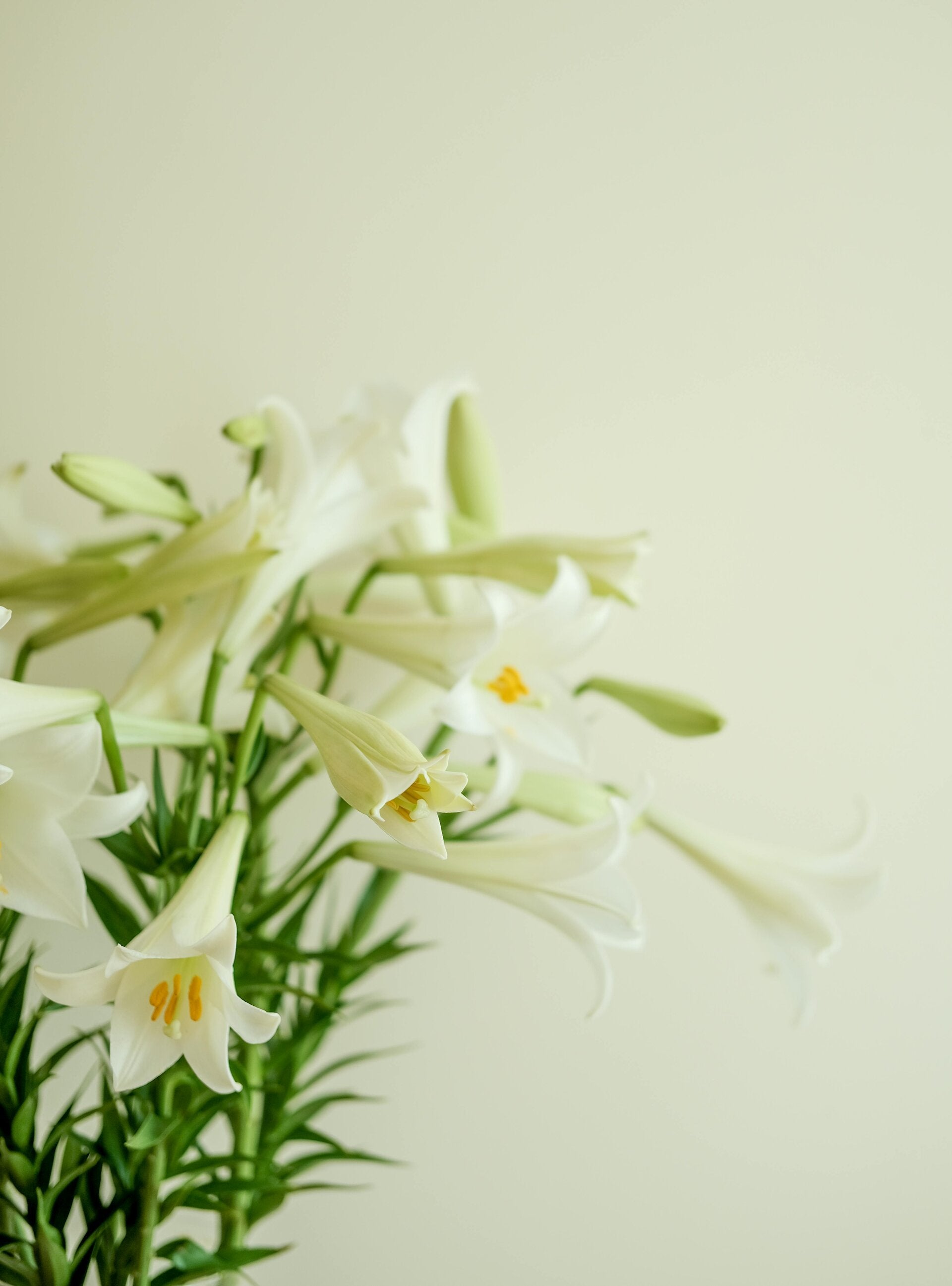 Timeless choices include carnations, cheerful yellow lilies, and lush ferns for a natural look.